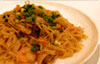 具沢山の塩味焼きそば、豚・エビ・イカ・もやし・にらと絶妙です! |