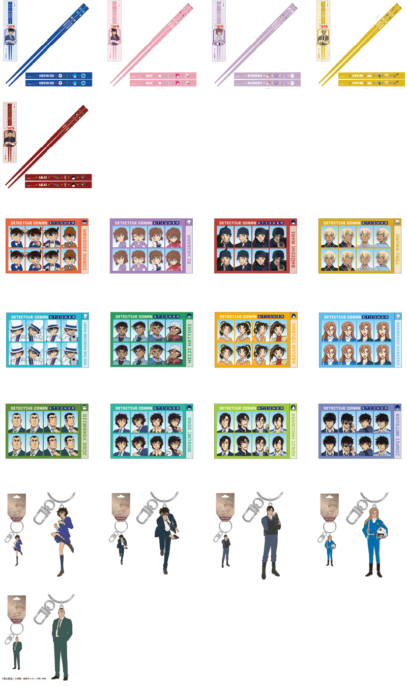 ・箸 全5種 ・証明写真風ステッカー 全12種 ・メタルキーリング 全5種