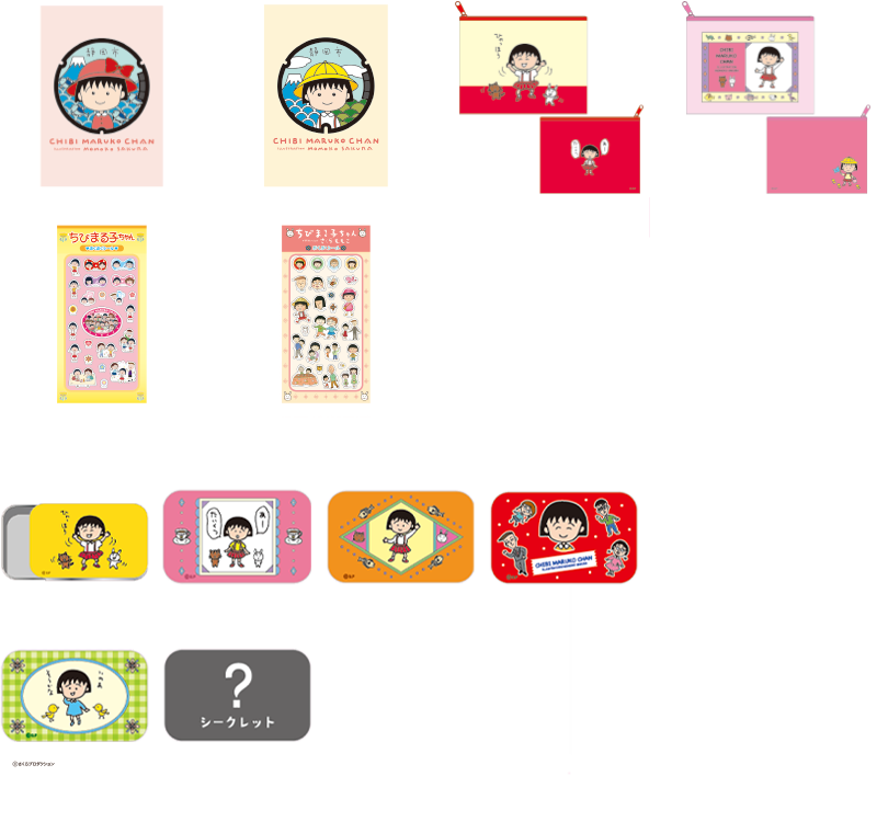 ・ポストカード 全2種 ・ポーチ 全2種 ・ぷくぷくシール 全2種 ・缶ケース 全6種